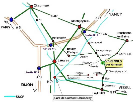 - 3 heures de Paris par autoroute A 5 puis A 31 sortie N° 7 Langres Nord ou sortie N° 8 Montigny le Roi. |