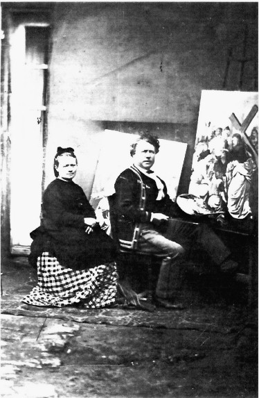 Jean-Pierre Jourdheuil A gauche: Dans son atelier, avec sa fille